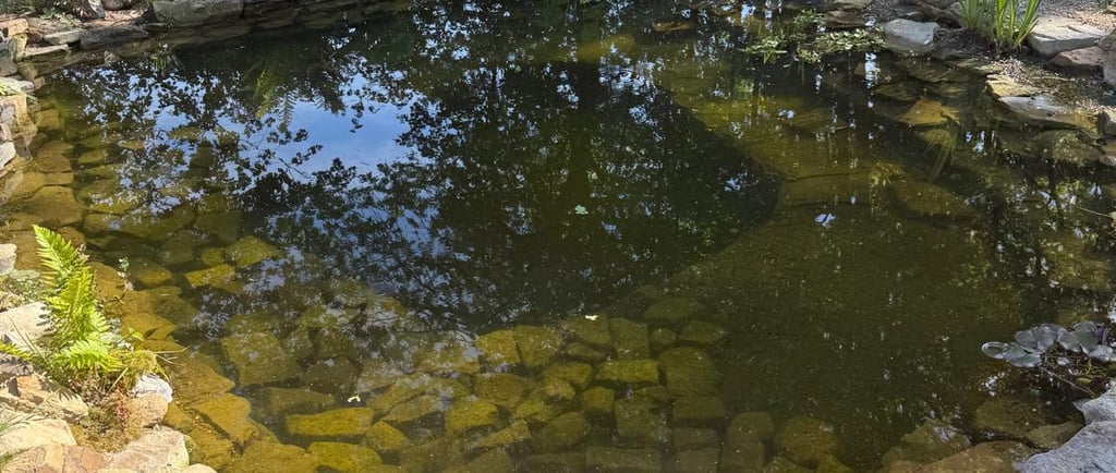 Best practices on gaining good water quality with less hassles, Shade is needed with minum sunlight, nothing less than 60% pond cover is required for good water quality, This pond we built around 1 year back and look at the quality of the water, this pond gets direct morning sunlight and late afternoon sunlight with most of the day in good shade as you can see in this image.