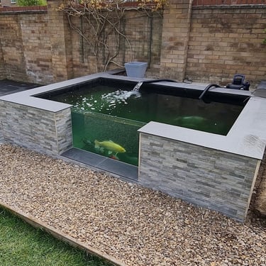 Immingham Raised Koi Pond Upgrade with 4 Viewing Windows, Fibreglass Lining & Tiled Exterior