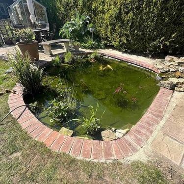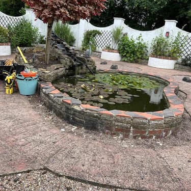 Market Rasen Backyard Ground Pond Makeover with New Liner, Upgraded Waterfall & Engineering Brick Edging