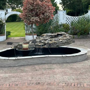 Lincoln raised garden pond rebuilt in concrete and fibreglass, adding new features for a modern, durable upgrade.