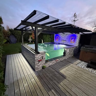 Scunthorpe Kingsway Modern Large Koi Pond with 2 Viewing Windows, Drum Filter, Bio Chamber, Pergola & Tiled Exterior