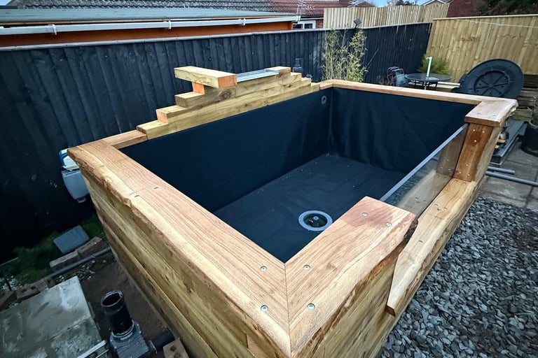 This is a standard pressure-treated timber sleeper pond.